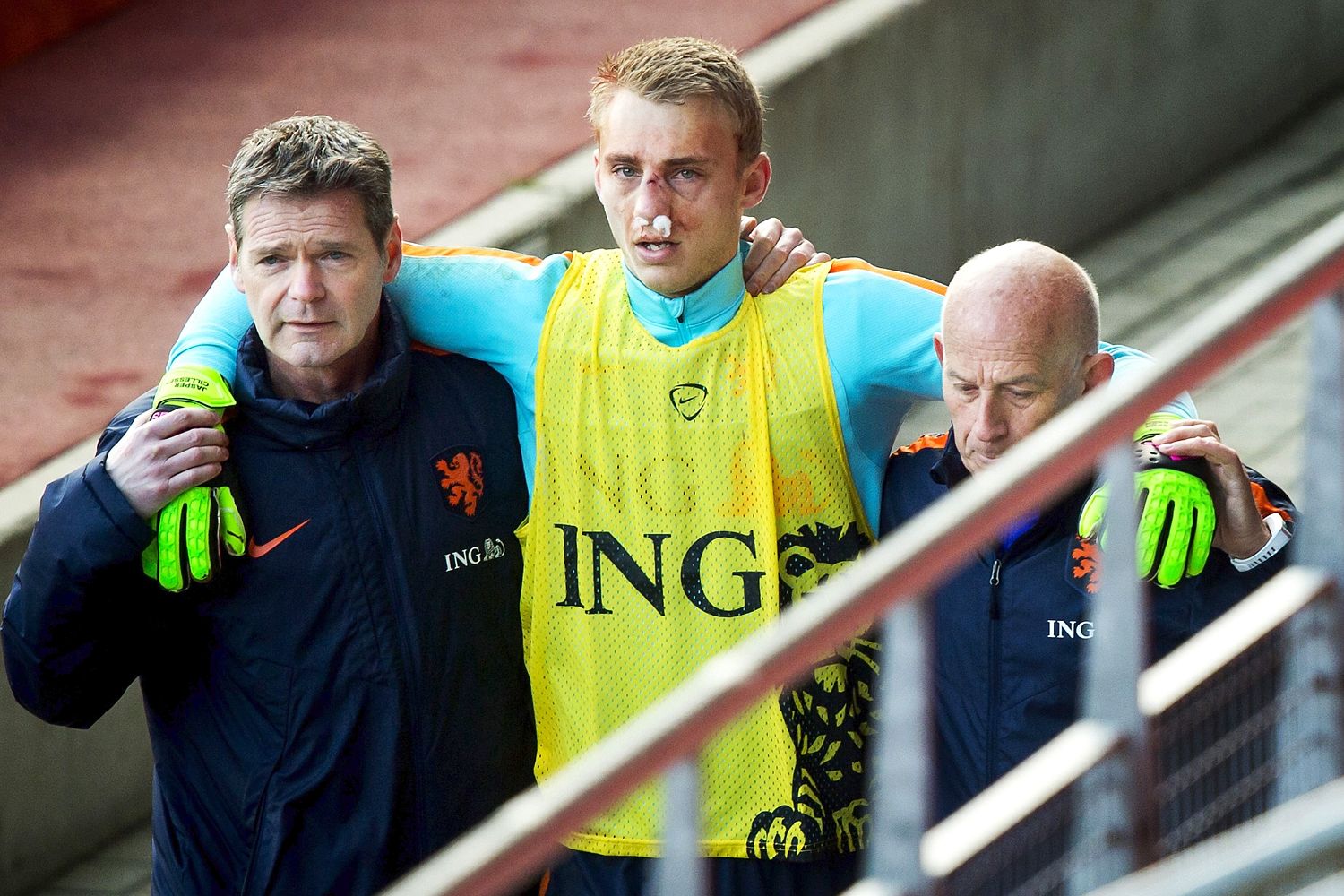 Mshambuliaji wa Uholanzi Klaas-Jan Huntelaar amevunja pua ya kipa wa Uholanzi Jasper Cillessen wkati wakiwa mazoezini.